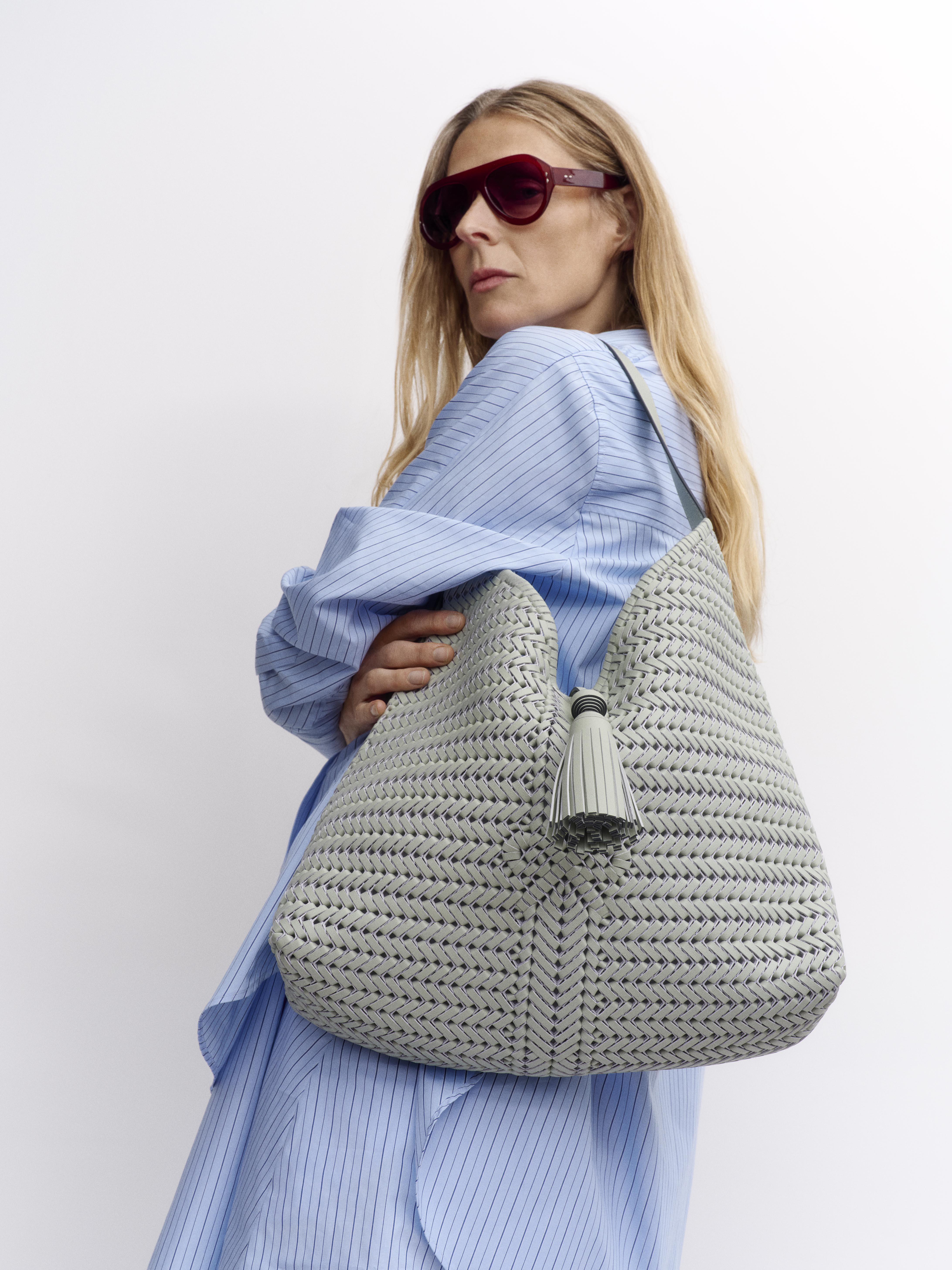 『Neeson』は、クラッチからトートまで、幅広いアイテムからなるコレクション。そのいずれもが、レザー・ストリングを編み込んで仕上げるため、軽くて丈夫、時と場所を選ばずお使いいただけます。編み込んだリボンのロゴもチャーム・ポイントです。