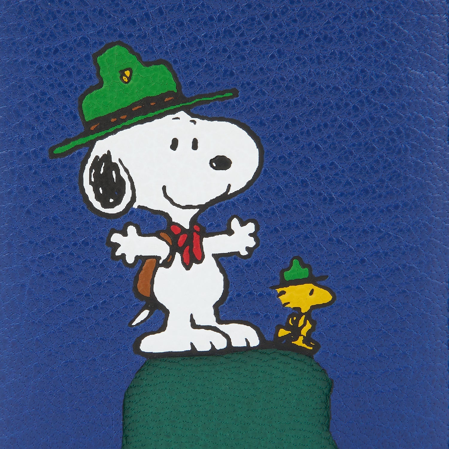 カプラ・レザーを用いたカードケース、その前面を飾るのは、今回のコラボレーションのテーマ『ビーグル・スカウト』にちなみ、スカウト帽をかぶったスヌーピーとウッドストックです。大切なカードを収め、ポケットやバッグにしのばせる、あるいはiPhone(12以降)にマグネットで取り付けてお使いいただけます。