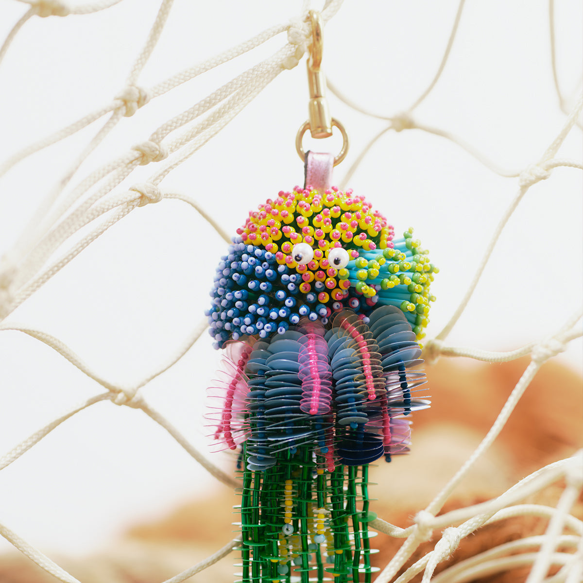 ビーズやスパンコールなどで、ちょっと不思議な「海の生きもの」をかたどったチャームです。付属のクラスプでお気に入りのバッグに加え、この夏をともにお過ごしください。