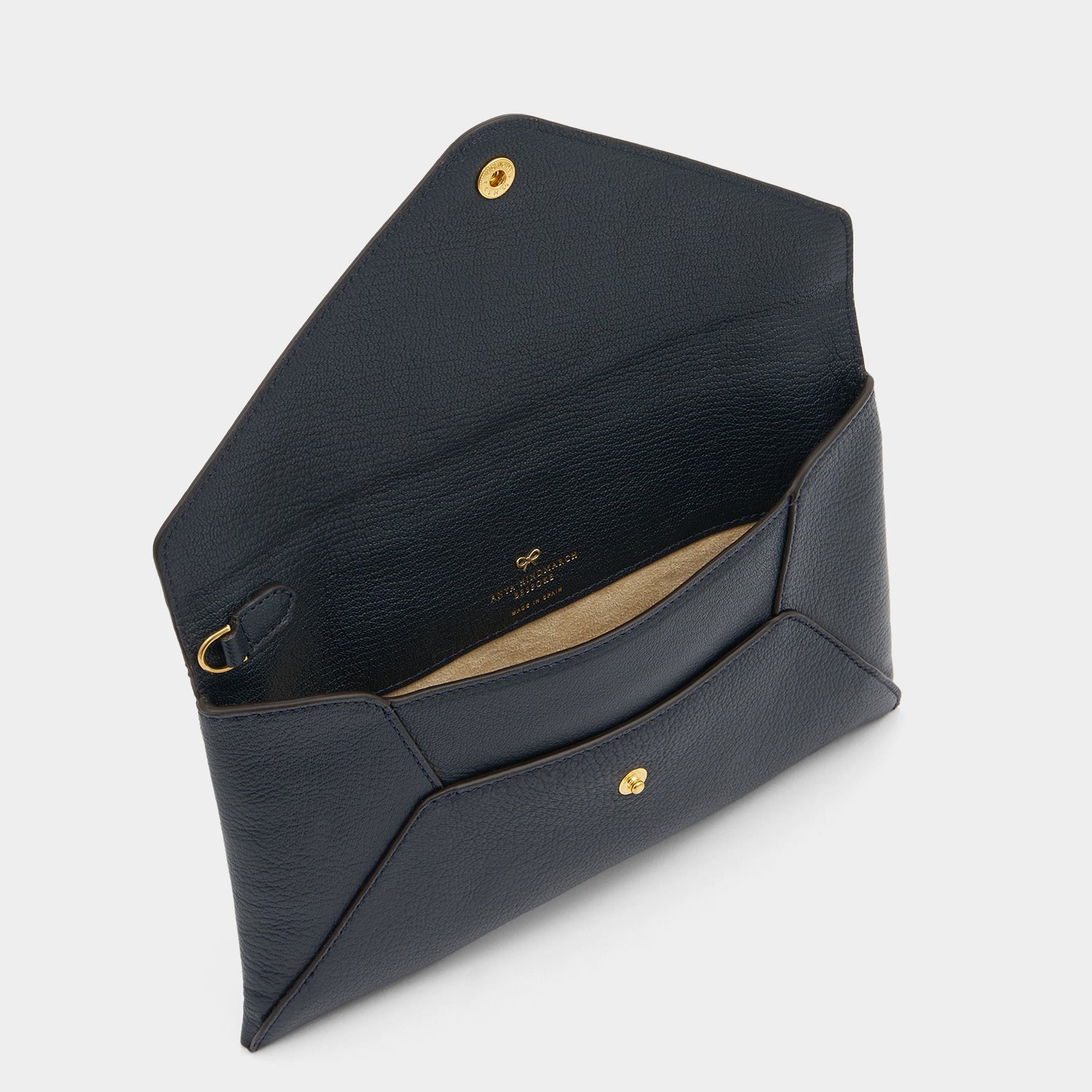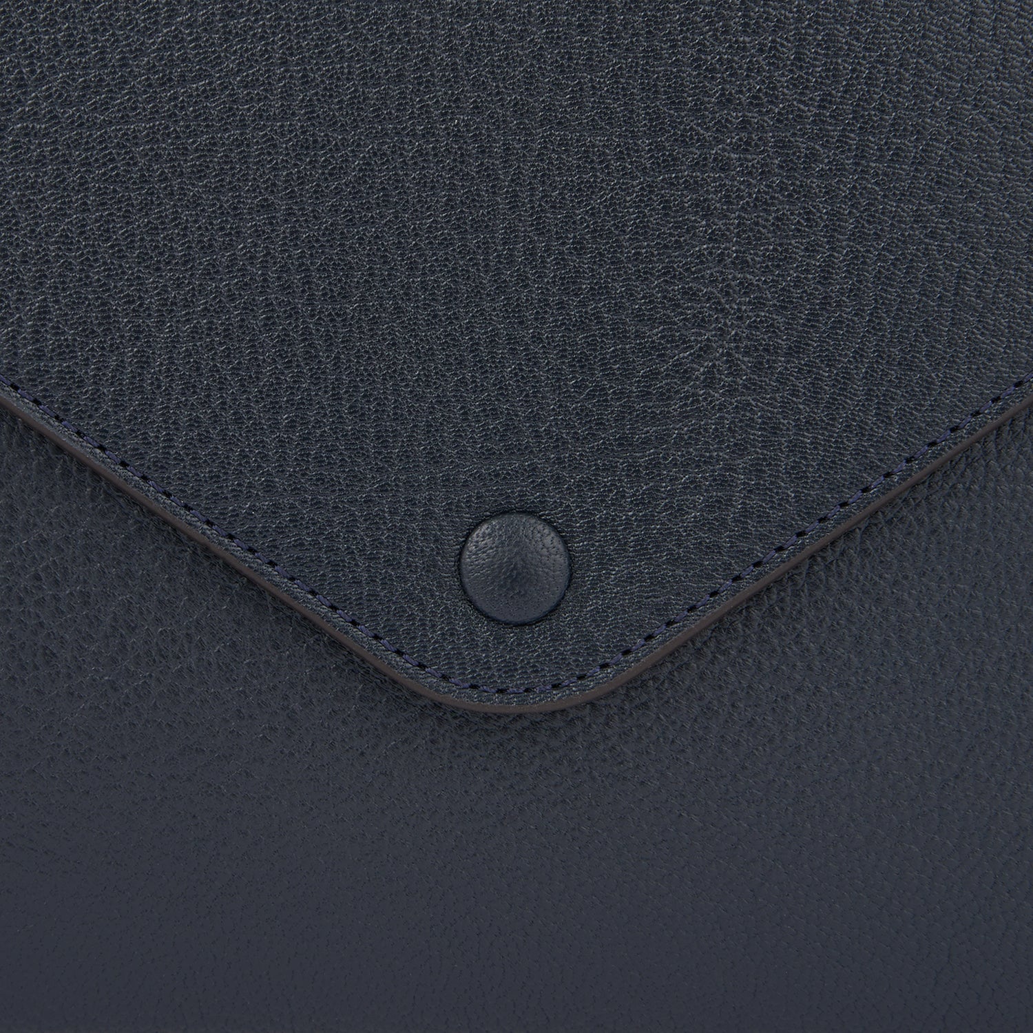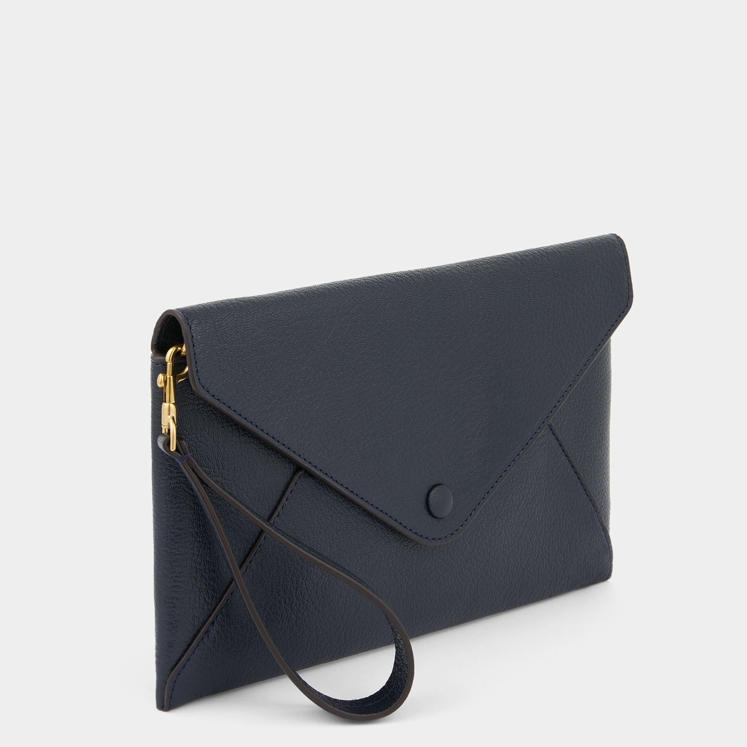 素材にはカプラ・レザーを用いた、封筒のような形状のポーチです。背面にはスロットをご用意し、リストレットは取り外しが可能です。