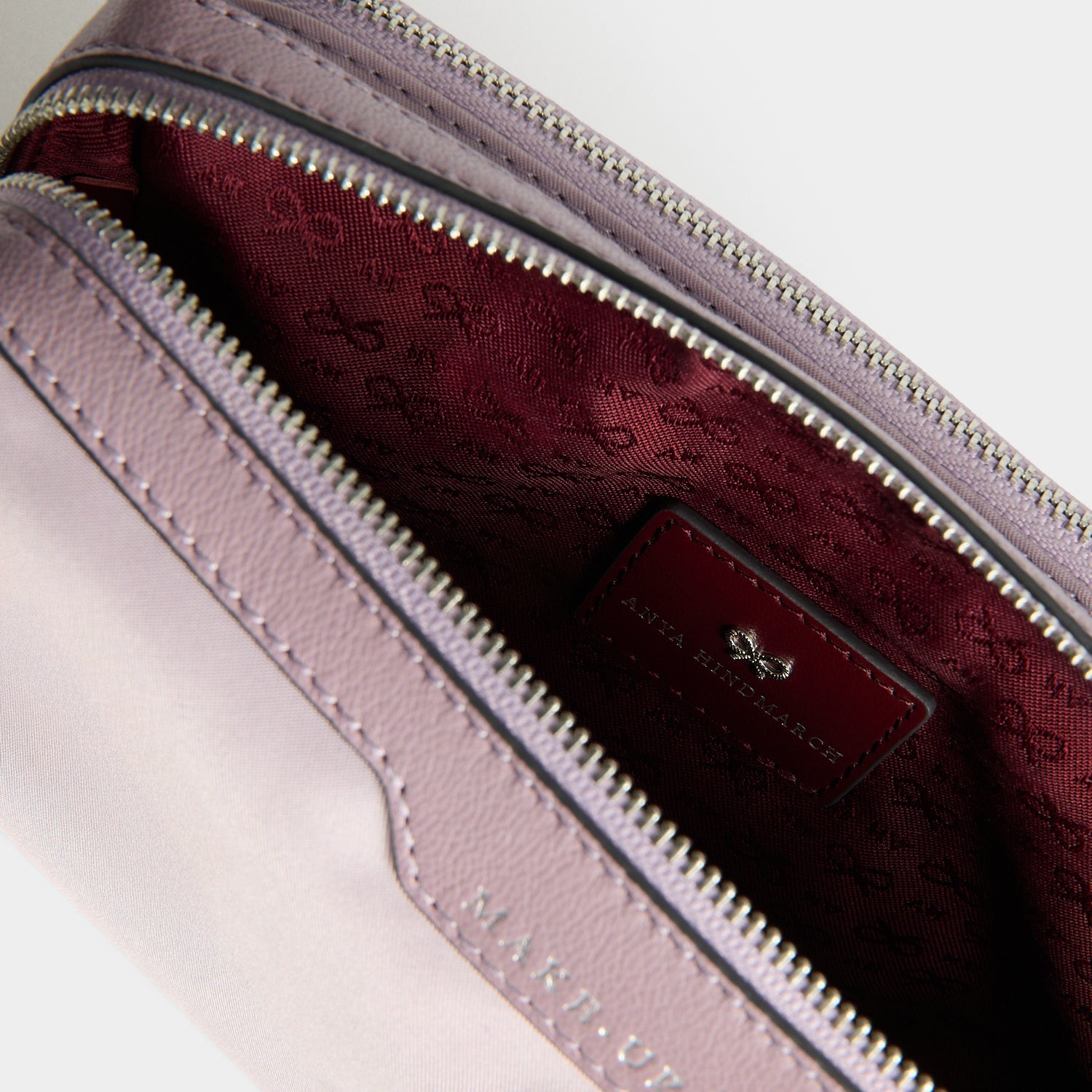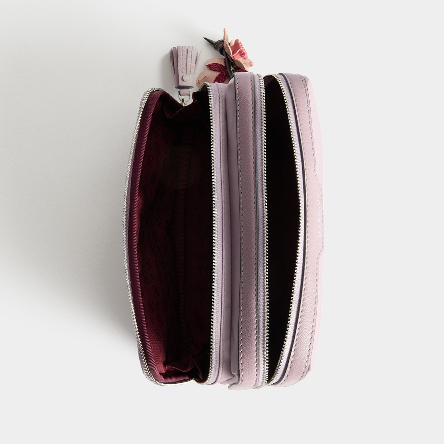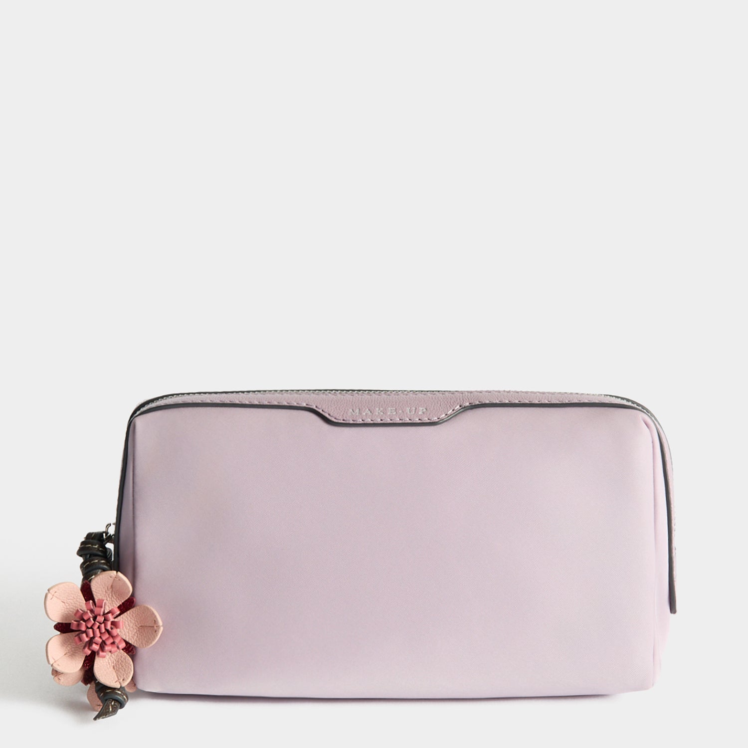 その旅行の目的や期間を問わず、メイクアップ用品をすっきりと収めたいなら必需品というべきポーチには、レザーでかたどった桜の花をあしらいました。じょうぶなナイロンを用い、ファスナーで開閉するコンパートメントは2つ。片方にはブラシを整然と収め、もう片方にはアイシャドウやリップスティックなどを収めることができるので、すっきりと、しかも清潔に整理整頓が完成します。