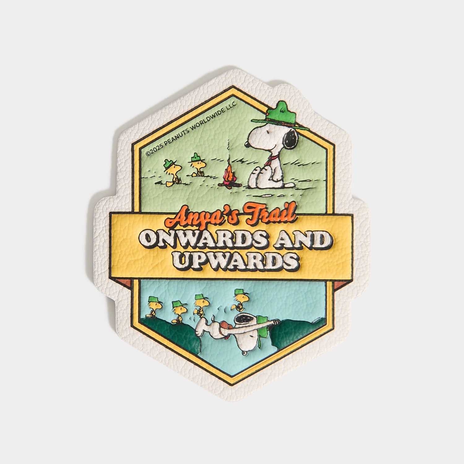 今回のコラボレーションのテーマは『ビーグル・スカウト』。スヌーピーやウッドストックたちが、隊列を組み、ボートを漕ぎ、アウトドアで活躍します。2つのシーンを盛り込んだレザー・ステッカーは、スヌーピー、アニヤ、双方のファンにとって記念の一品となるはずです。
