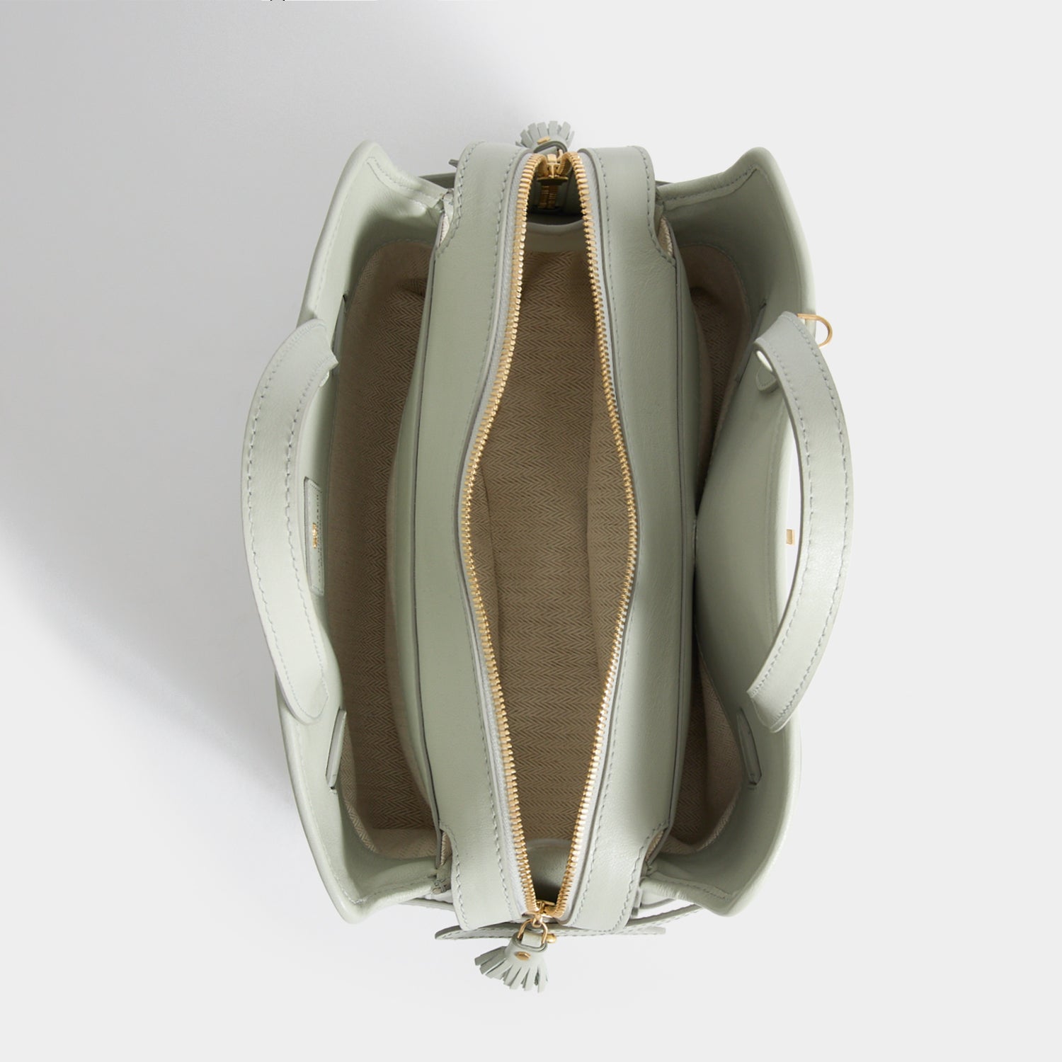 - 中央のコンパートメントはタッセル付きジップで開閉可能