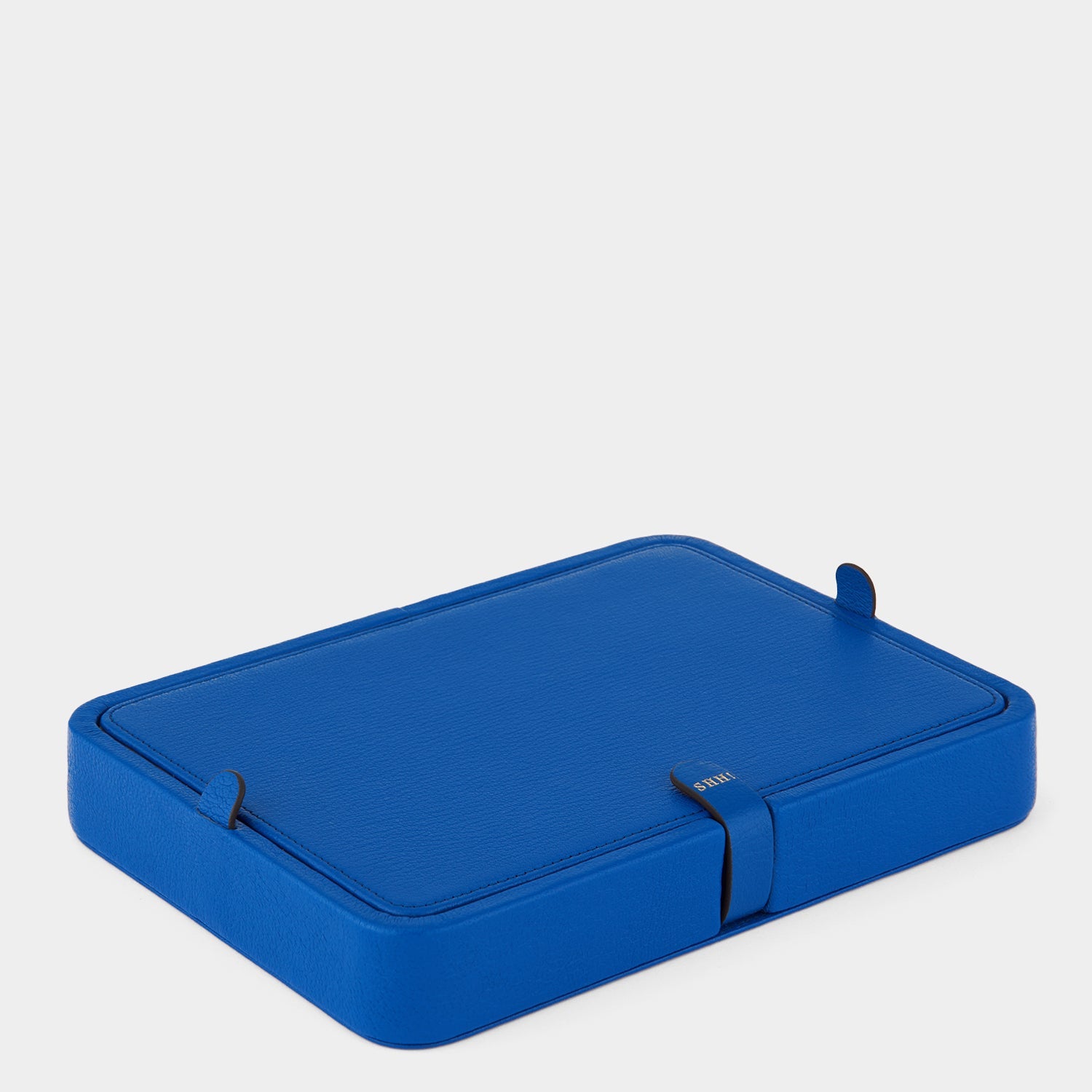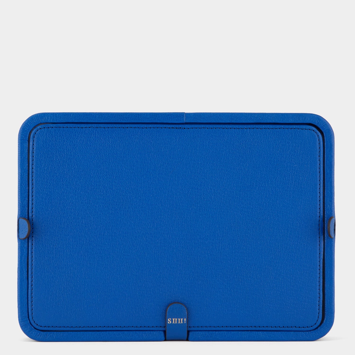 『ビスポーク・キープセイクボックス・XL』にぴったり収まる「インサート」です。キープセイクボックスに収めると一見「フタ」のよう見えるかもしれませんが、「Shh!」と記されたタブを持ち上げると、そこに秘密の空間が現れます。素材にはカプラ・レザーを用いています。