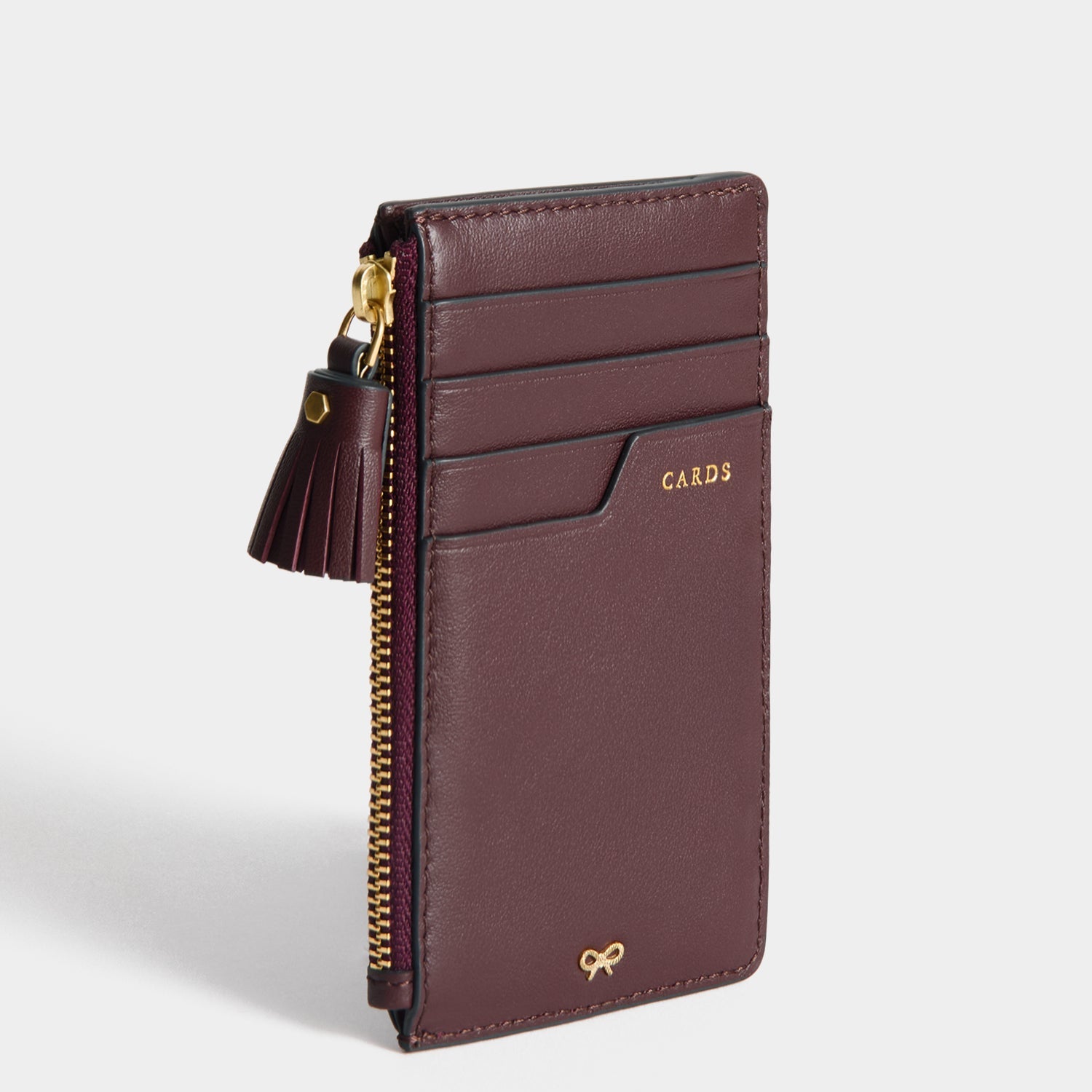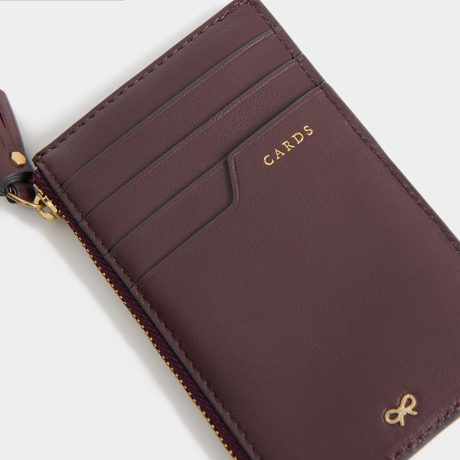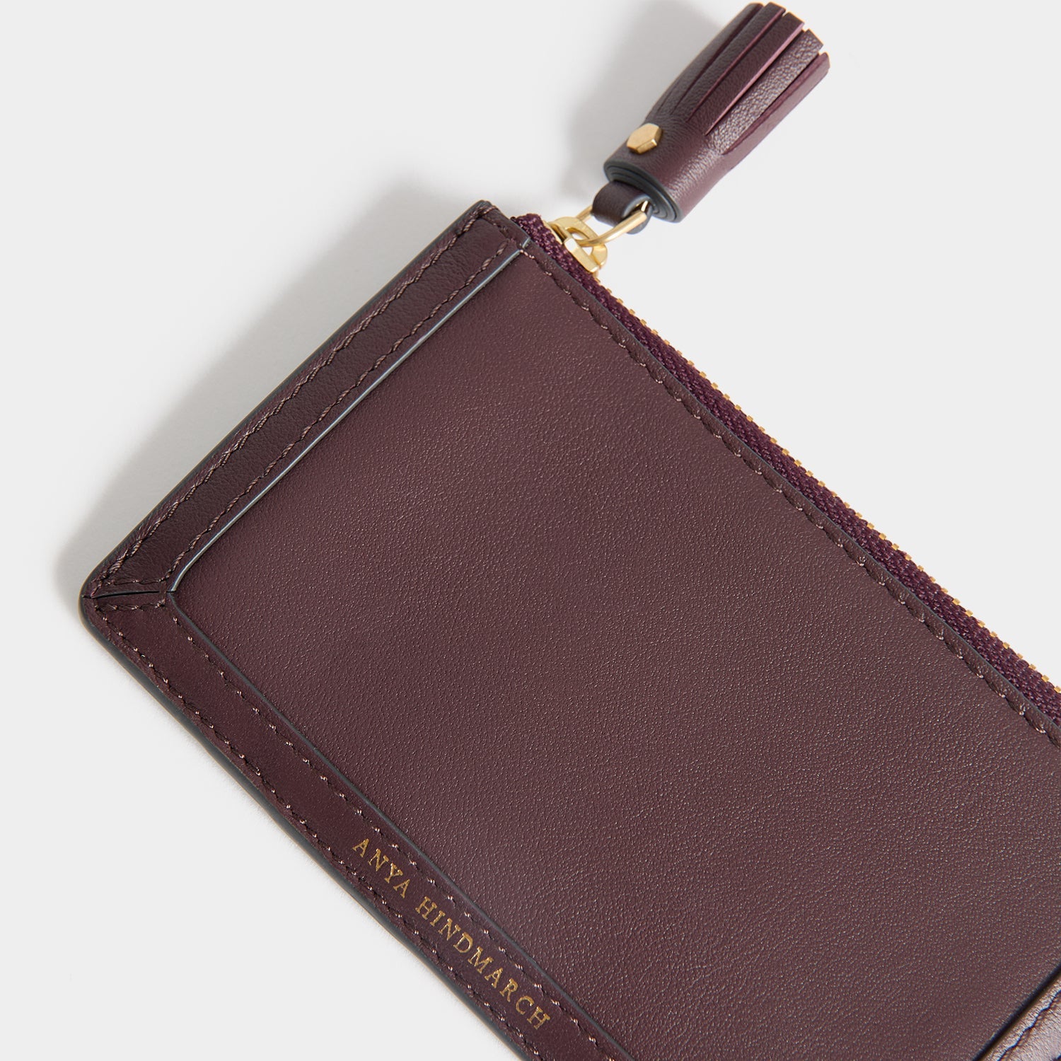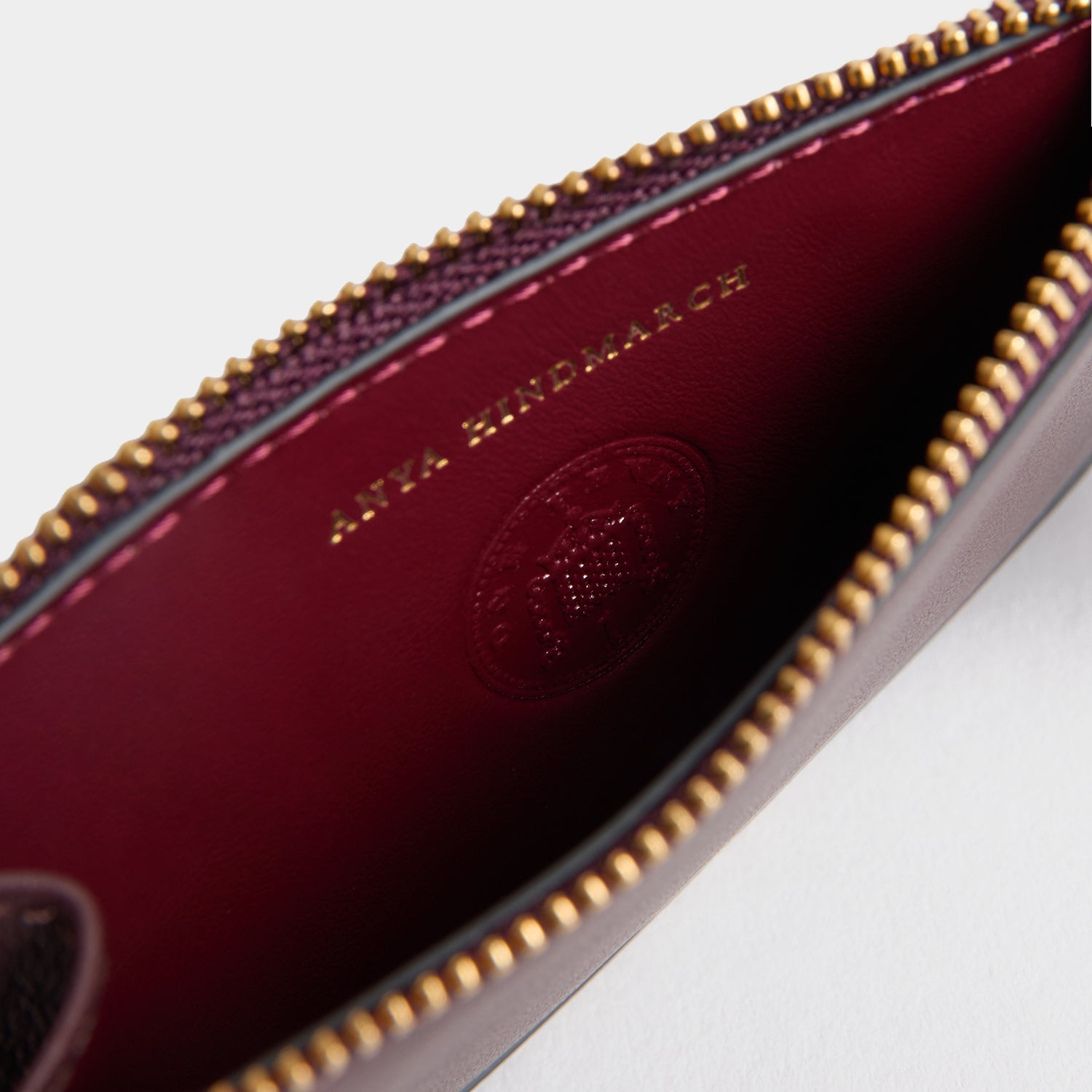 カプラ・レザーを用いたカードケース。背面のスロットには4枚のカードを、ファスナーで開閉するコンパートメントにはコインや畳んだ紙幣を収められます(よいことがありますように、と「ラッキー・ペニー」の刻印を添えておきました)。