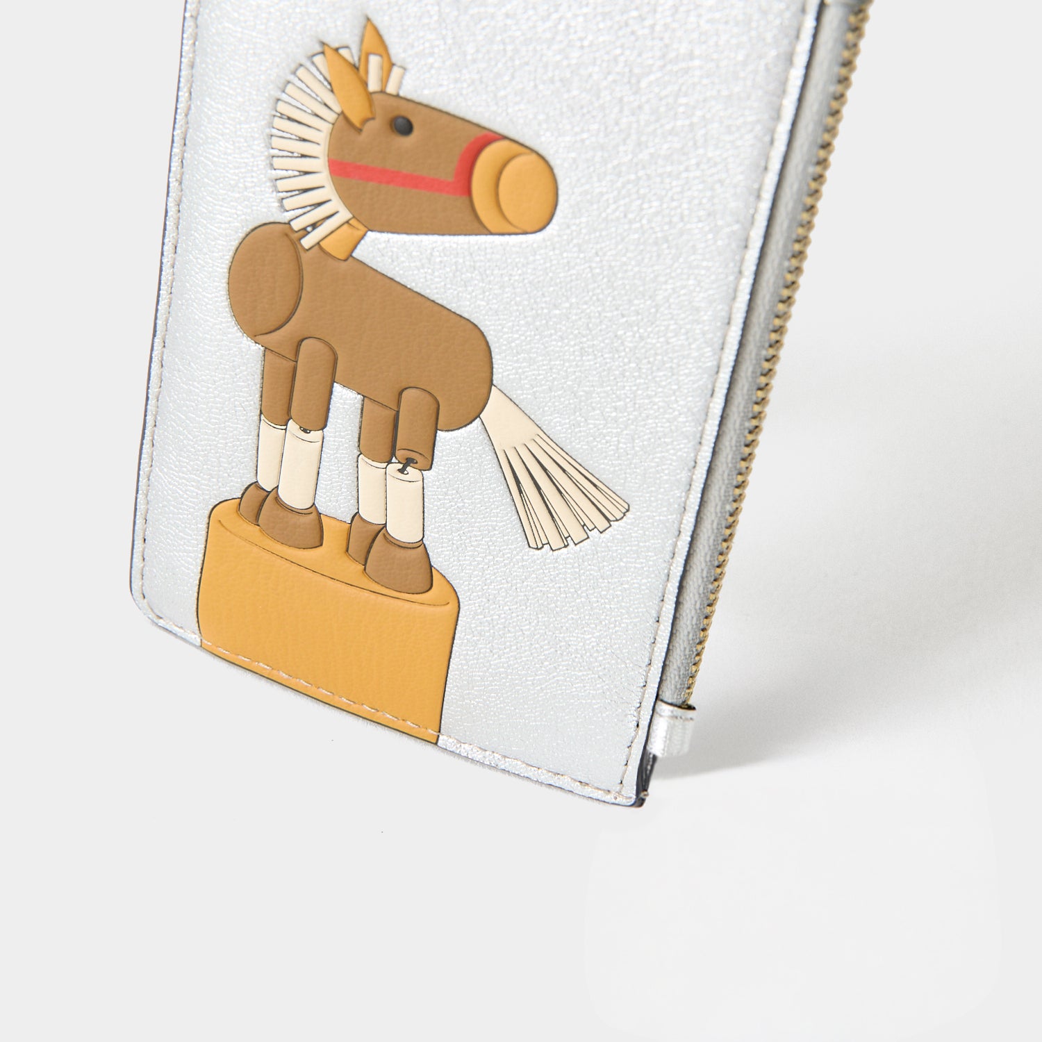 カプラ・レザーを用いたカードケースの表面を飾るのは、2026年の干支にちなみ、懐かしいプッシュ・パペットのお馬さんをモチーフにしたグラフィックス。背面のスロットには4枚のカードを、ファスナーで開閉するコンパートメントにはコインや畳んだ紙幣を収められます(よいことがありますように、と「ラッキー・ペニー」の刻印を添えておきました)。新たな年を新たな気持ちでお迎えください。