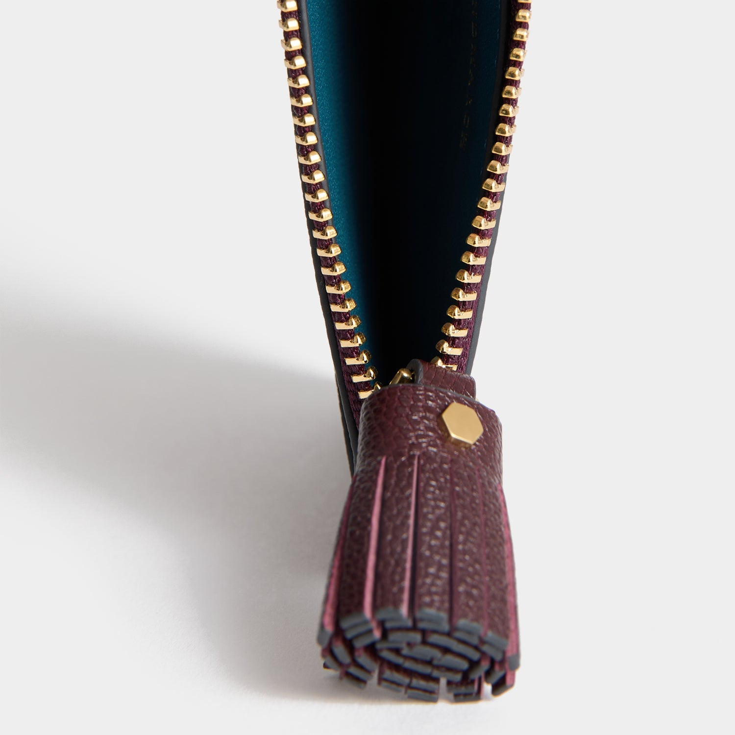 カプラ・レザーを用いたカード・ケース。背面のポケットにはチケットやレシートなどを、ファスナーで開閉するコンパートメントにはコインや畳んだ紙幣を収められます。加えて、あざやかなブルーのスロットには4枚のカードを。とっても実用的でありながら、常にあなたを見守るつぶらな瞳が和みの時を与えてくれます。